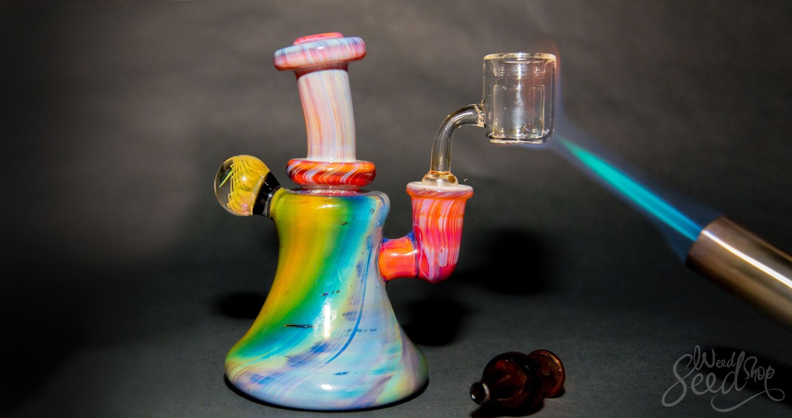 All the kids are doing it! “Dabbing” is a new inhalation method of cannabis that requires some specialized equipment but can deliver the effects of cannabis concentrates quickly and with great potency. Many consumers compare dabs and other routes to taking a shot of alcohol versus drinking a beer. A conventional dab rig resembles a glass bong, but they do differ slightly. A butane torch heats a metal or ceramic nail. When the heated nail is dabbed on concentrates, the cannabinoids activate and the vapors can be inhaled. This differs from the typical bowl and lighter technique for water bongs.